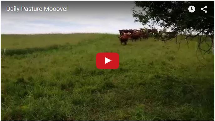 I often get questions or funny looks when I tell people I move my cattle every day to new grass. We put together this video to show you how easy it actually is and how it works. They actually were a bit difficult this time! But mostly that was because they were very satisfied and relatively full from the previous day’s grazing. You can still see plenty of grass in the strip they are in, but compare that to where they are going! We like to leave a good amount of residue behind, grass that is still several inches tall that has had it’s top bitten off along with taller stemmy grass that has been trampled to the ground. This enables the pasture to recover and regrow much faster as its solar collectors are not completely wiped out. The trampled grass will break down providing food for earth worms and soil microbes, building organic matter so the soil will hold more water and nutrients and grow more grass next time – sustainable!